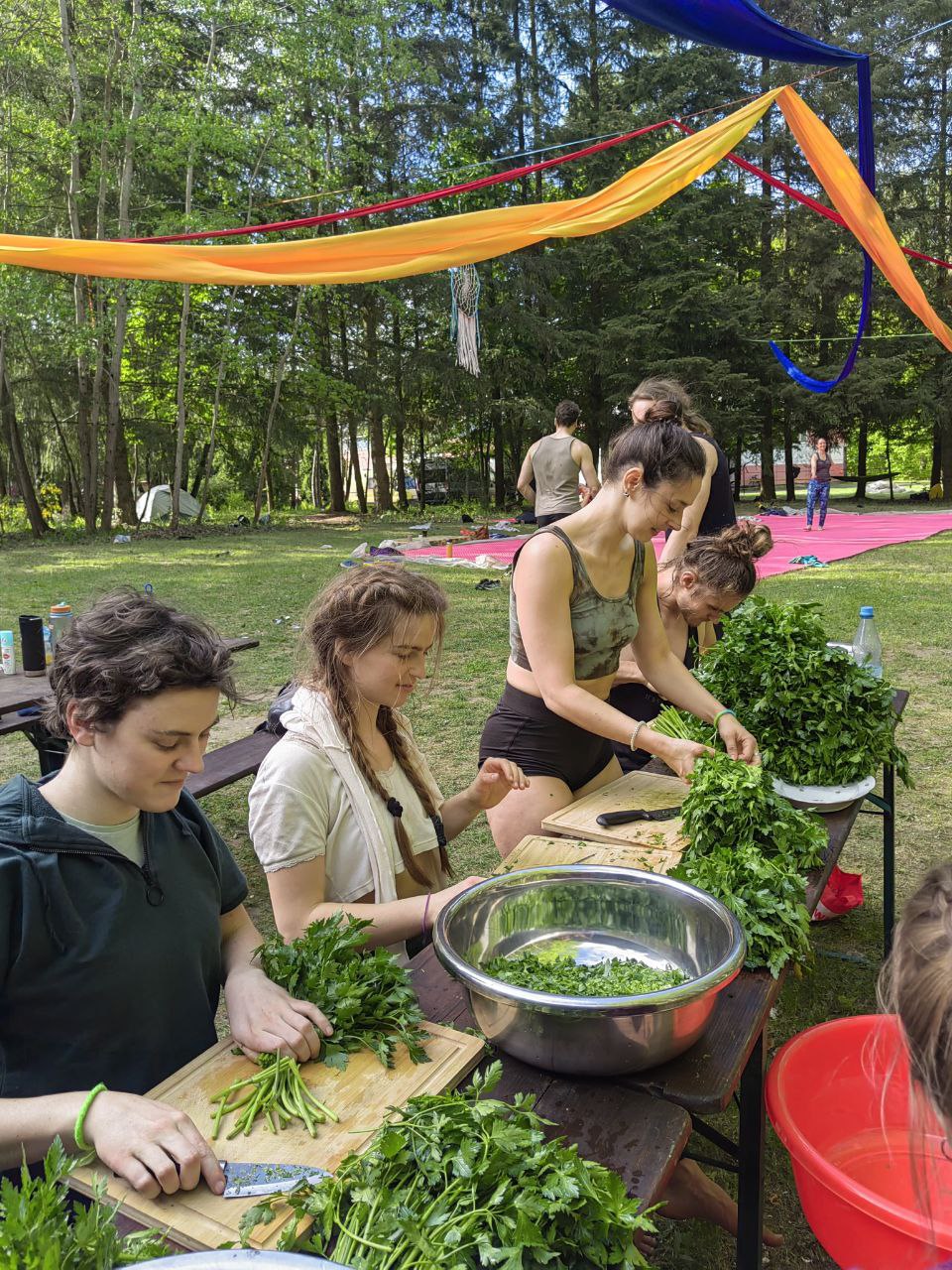 Gemeinschaft wird groß geschrieben: Alle helfen 3 Stunden in der Küche mit.