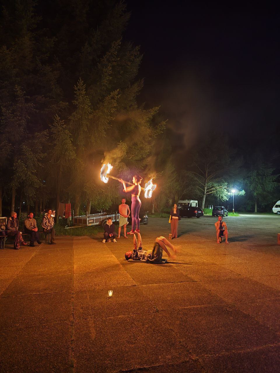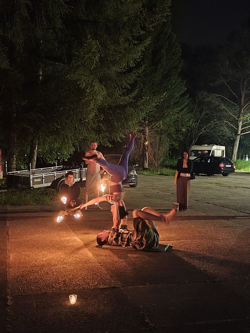 At Acroschweinschen – November edition – I’ll be holding space for fire spinning in the evenings, bringing some warmth and light to the darkness. I’ll bring a few tools and all the essentials (including oil and a safe setup), so feel free to bring your own props too. Whether you’re a seasoned spinner or want to try fire for the first time, I’ll be there to guide you on how to use the tools as well as firesafety.